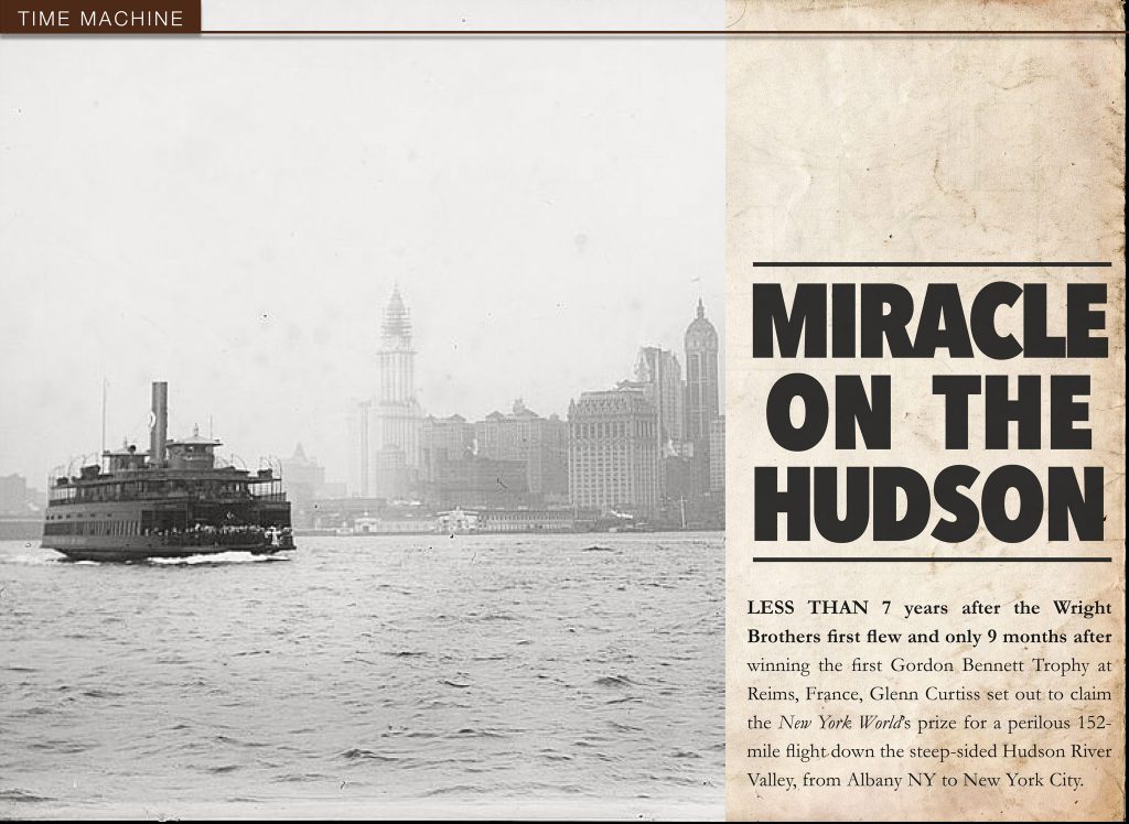 Incidentally, I remarked that I was contemplating a trip up the river from New York to Albany in an aeroplane. The officer answered all my questions courteously, but it was evident to all of us that he believed I was crazy. He took me to the captain and introduced me, saying “Captain, this is Mr. Curtiss, the flying machine man; that’s all I know,” in a tone that clearly indicated that he disclaimed all responsibility as to anything I might do or say.