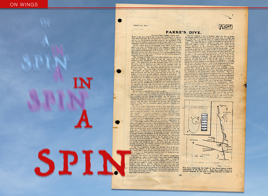 Inspired by master spinner Rich Stowell’s salute to Harry Hawker 100 Years of Intentional Spins (do make sure you watch it) I looked up that original account of the first described spin recovery by Wilfred Parke.
