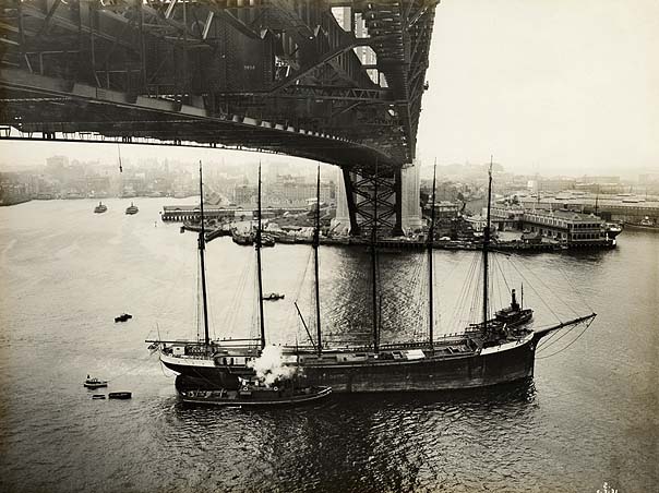 After the ship passed through the Heads, the other pilots turned south for Mascot aerodrome. But Taylor and Anabel flew back to the bridge and circled, waiting for a break in the steamer and ferry traffic below.