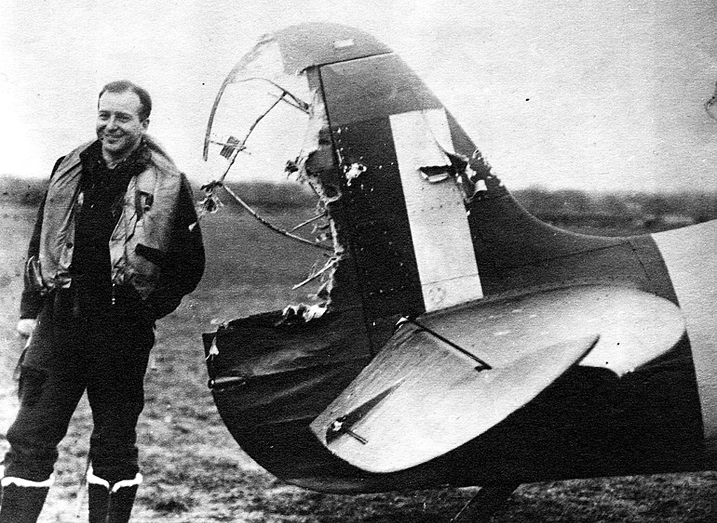 And the shooting wasn’t all one-way. Despite losing a good bit of his tail to the enemy, Morrison was also credited with one Fw 190 probably destroyed, while Truscott was credited with one destroyed – his last victory in Europe. On reaching their base at Redhill, Morrison discovered just how lucky he’d been, and Truscott learned he’d just been awarded a Bar to his DFC.