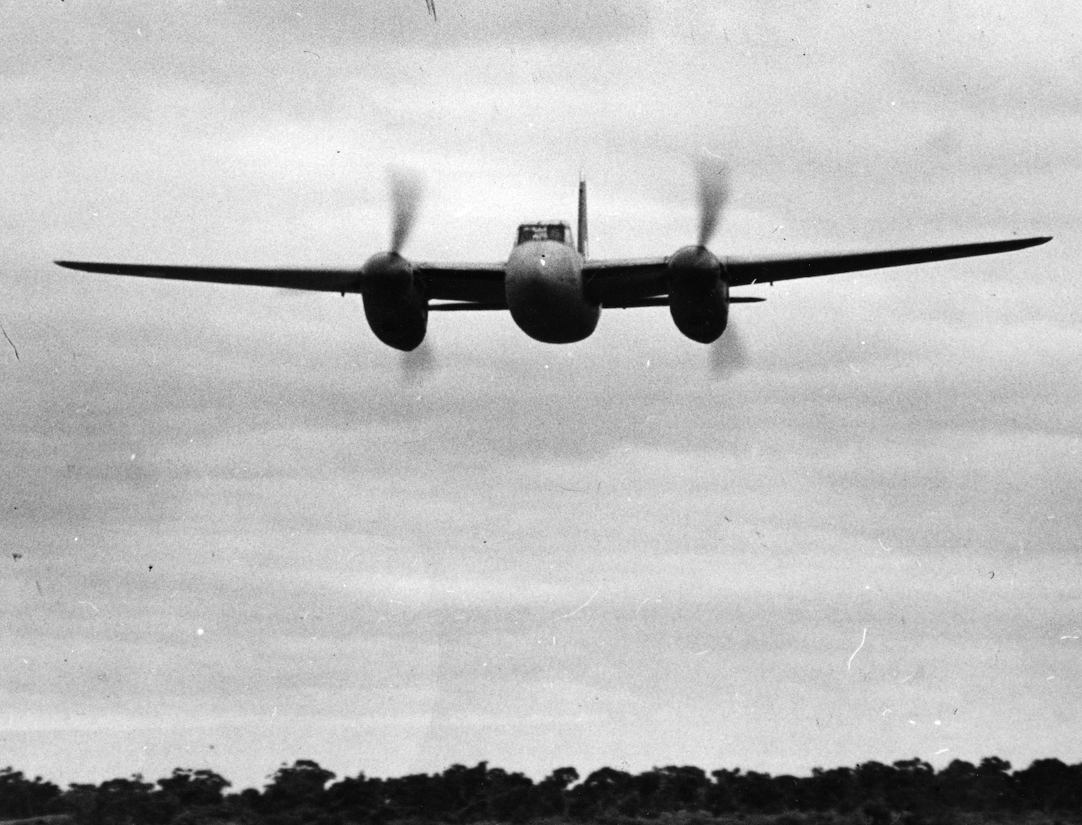 With a 1,460hp Merlin spinning counter clockwise on each side (1,620hp Packard Merlins on the FB Mk.26), keeping a Mosquito straight was no easy task - even in the air. (State Library of Victoria H98.100/4295)