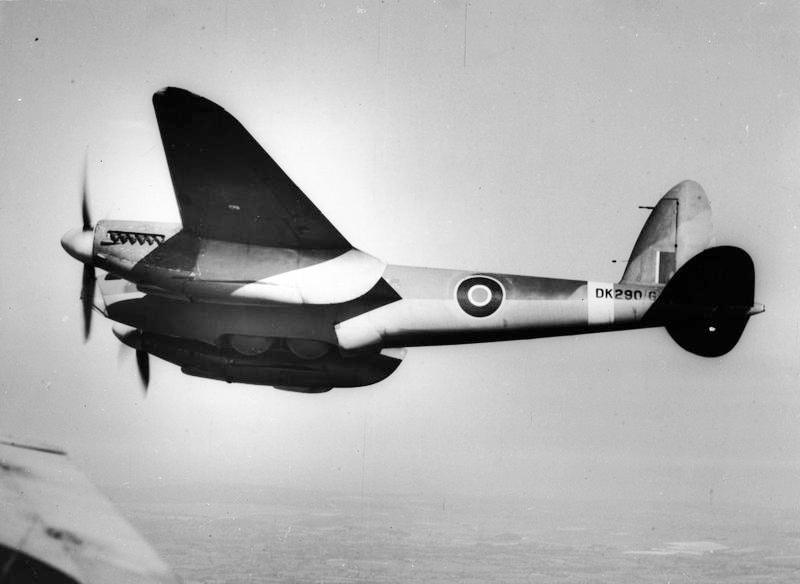 Another view of the Sea Mosquito prototype with its wings out and the four-bladed props in plain view. Outwardly, little else is different, apart from the missing 303s and the radome. (IWM ATP15206B)
