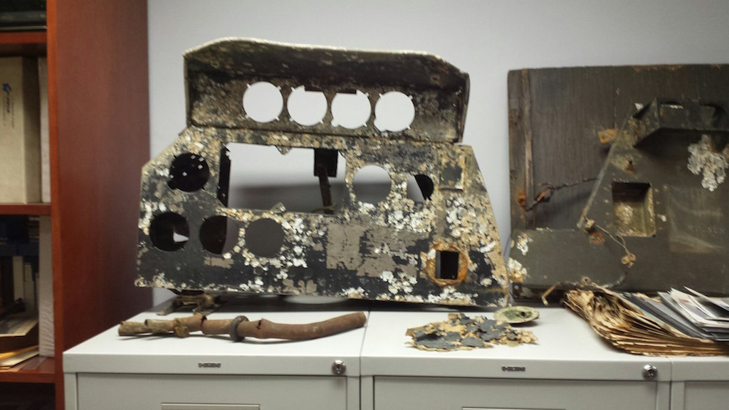 #214's picked clean co-pilot's panel and R/O's table, both recovered during the 2014 dives. (Courtesy of Jack Waid)