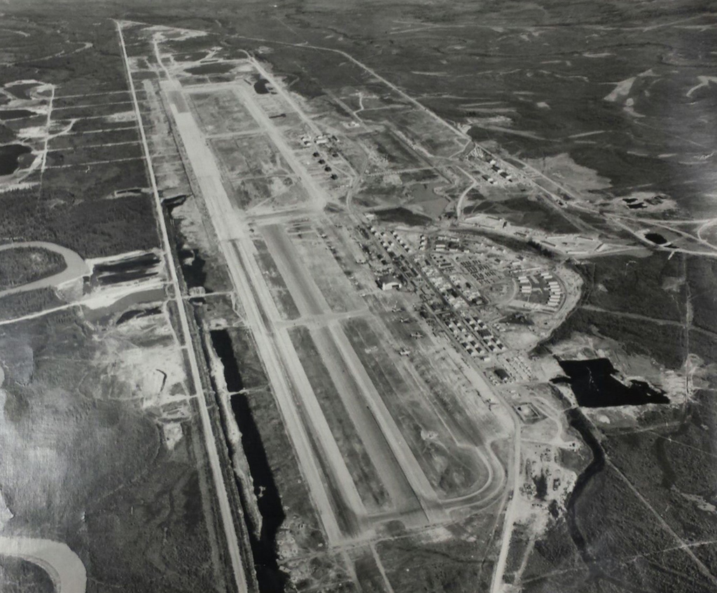 Eielson AFB as it appeared in 1950 (August 14th, to be precise). #214's gravel pit would be dug toward the top of this view, on about the axis of the parallel taxiway. (USAF, courtesy of Jack Waid)