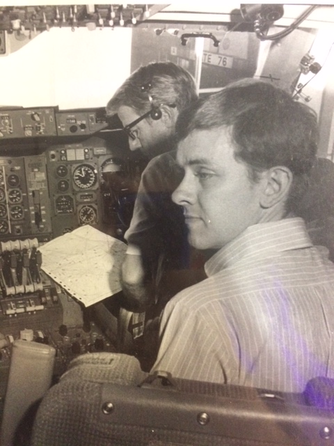 A second photo of Rick, with his mentor Len Morgan preparing for departure in the background. No glass cockpits or EFBs in those days! (© Courtesy of Rick Broome)
