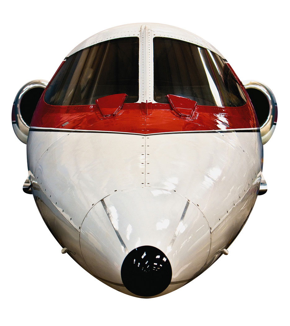 With anti-ice tear ducts and puppy-ear nacelles, Pima A&S Museum’s Learjet 23 N88B (msn 23-015) belies its speedy pedigree. (Manolo Chrétien)