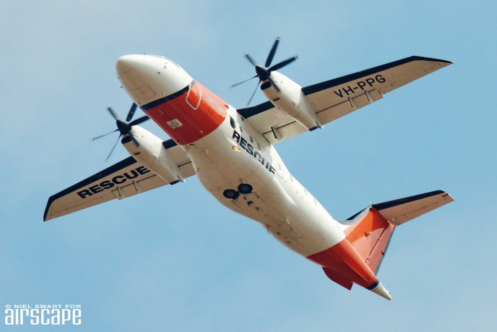 VH-PPG, AeroRescue’s Dornier 328 (msn 3053) from Australia, shows off its elegant lines. Originally designed as a turboprop commuter airliner, the Do.328 was also offered in a pure jet configuration. (© Niel Swart)