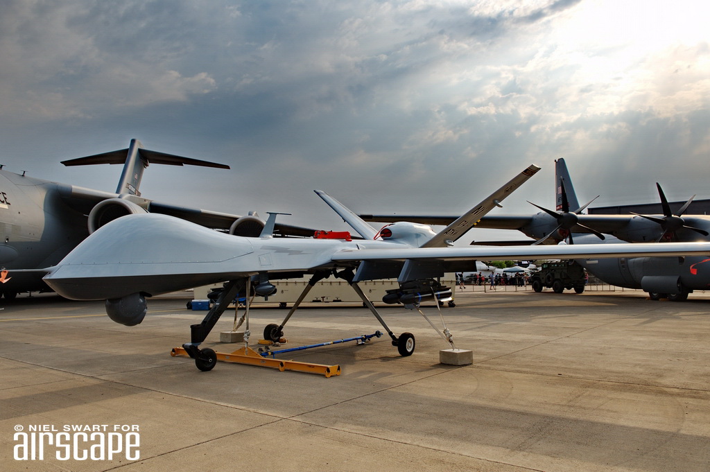 Where’s the pilot? (Anywhere you like.) A USAF MQ-9 Reaper sits (autonomously) in the static display area. (© Niel Swart)