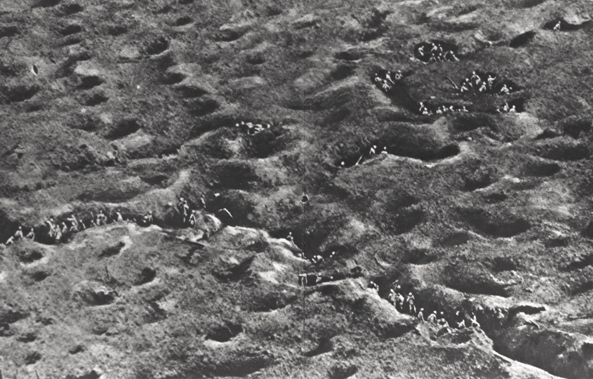 The command of VIII Corps completely lost touch with the 46th (North Midlands) Division once it marched into no-man’s land. From the air, the contact patrol could see Germans come out of their hiding places as the first waves passed, then organise murderous rifle and machine gun fire against the follow-up waves.