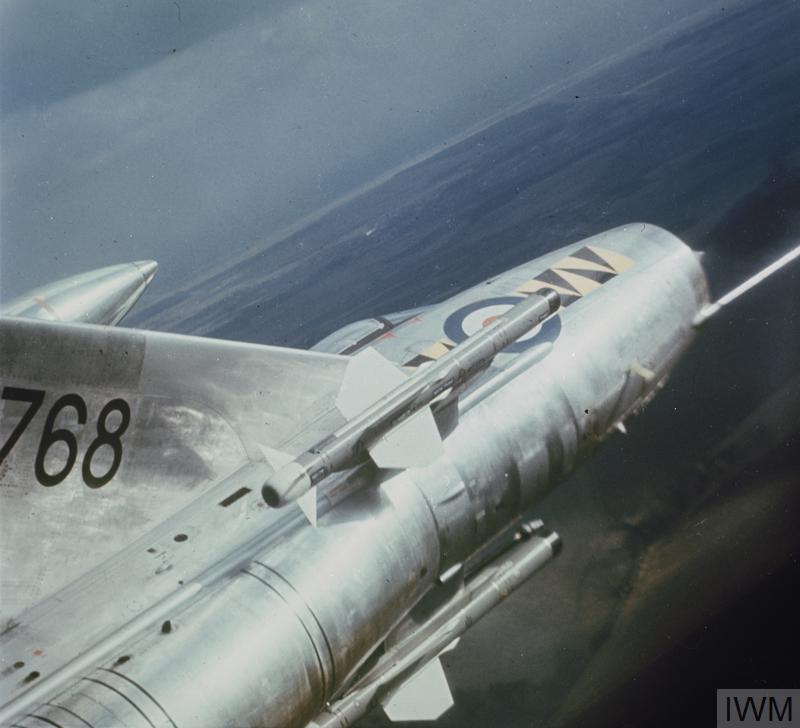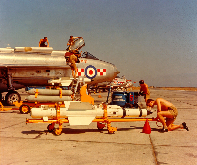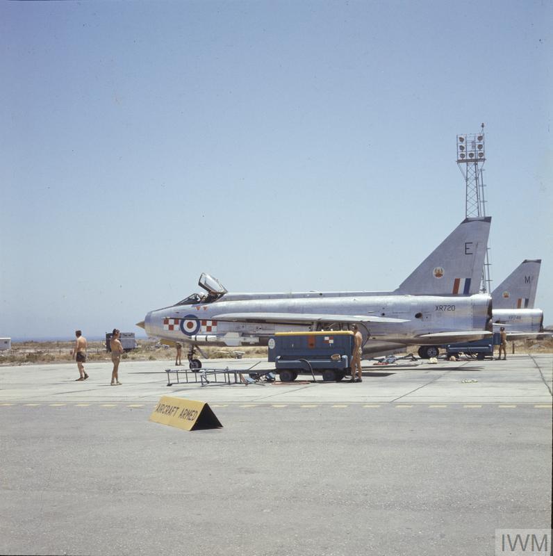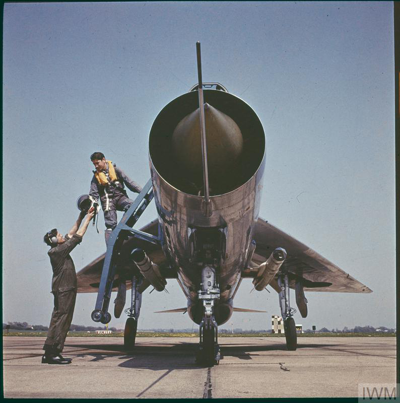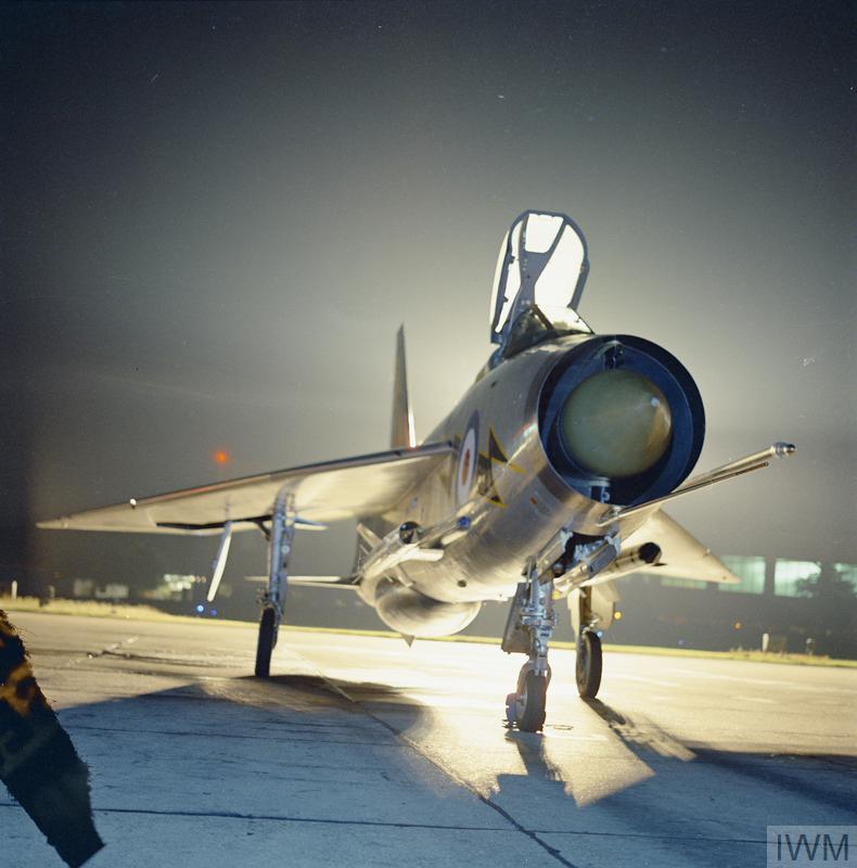At the time, 29 Sqdn. was flying the E.E. Lightning F Mk.3 – an improved variant that featured the larger square-topped tail, low profile belly tank, and more powerful Rolls-Royce Avon 2301R engines delivering up to 16,360 lb of wet thrust each. The aircraft’s typical take-off weight wouldn’t have been much above that combined 32,720 lbs.
