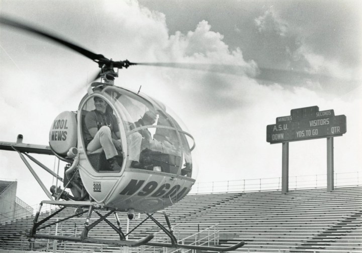 Homer Lane’s big idea in 1971 was really two insights in one. The skinny general manager at KOOL-TV Channel 10 in Phoenix figured his reporters could beat the competition to a story if they rode in a helicopter. And Lane – a penny-pinching executive who looked out at the world from behind an uncertain moustache – figured the pilot could also do a few traffic reports along the way.