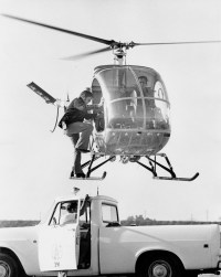 After Foster destroyed the Pollywog – in a mishap caused by one of his film canisters accidentally flying into the pimped-out chainsaw’s wooden blades – KOOL-TV spent a bit more money on a replacement, a nice little Hughes that Lane painted in red, white, and blue. Foster was getting very familiar with the old pilots’ adage that “any landing you walk away from is a good landing,” but he was excited to get a newer chopper.