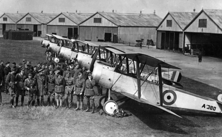A Flight of 70 Squadron RFC line up their Sopwith 1½ Strutters at Farnborough before flying to St Omer, 20 miles south-east of Calais, on May 24th, 1916. (Courtesy of kingstonaviation.org)