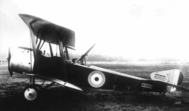 An unidentified Strutter but, with it’s early ‘buff’ colour and lack of guns, this may well be the prototype, passed on to the Admiralty, at Eastchurch in late March 1916. (IWM Q 68151)