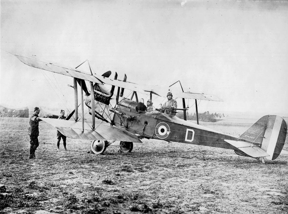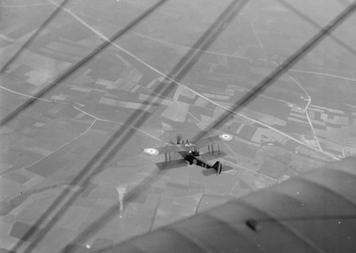 An R.E.8 (from No.59 Sqn. RAF, but you get the idea) on patrol in May 1918, seen from a second R.E.8. Incredibly, as April 21st’s dogfight drifted west, the two Australian R.E.8s returned to Le Hamel and finished their mission! (IWM Q 12175)