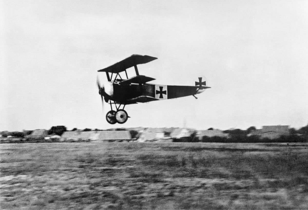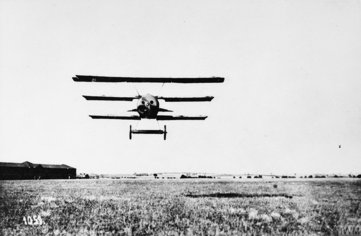 von Richthofen guiding his all-red Fokker Dr.1 in to land after a combat patrol. (IWM Q 58047)