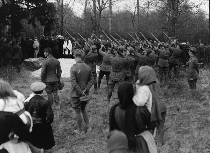 Airmen, soldiers and curious French locals attend the military funeral of Manfred von Richthofen, at Bertangles village cemetery, April 22nd, 1918. (IWM 10921)