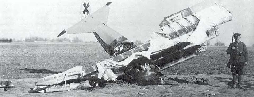 The wreckage of Lothar van Richthofen’s Dr.1 454/17 after its wing leading edge failure and subsequent crash on March 13th, 1918.