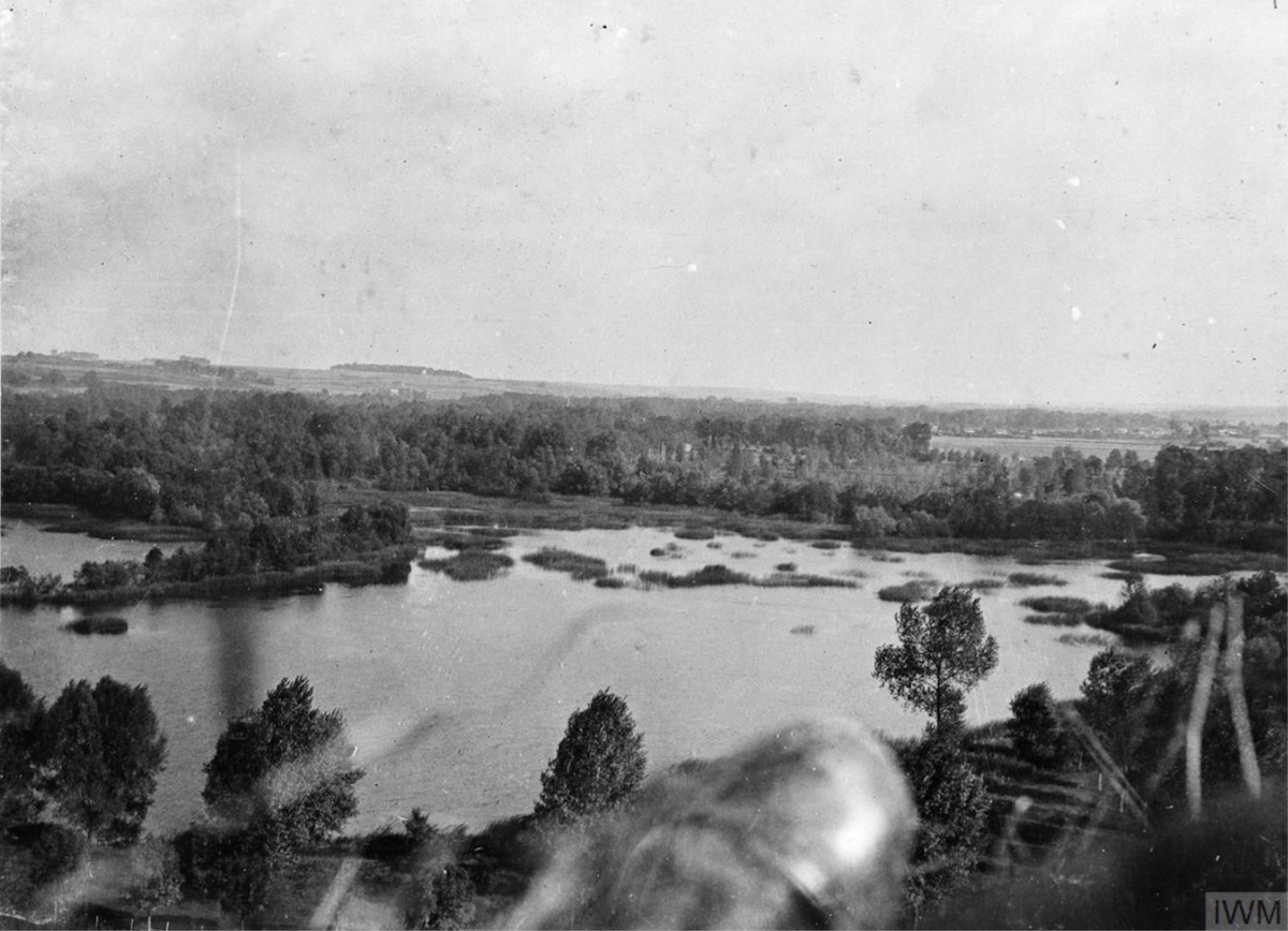 Looking up the valley of the Somme, across the village of Vaux-sur-Somme, in 1916. May and von Richthofen would come tearing along this stretch of the river. (IWM Q 17486 )
