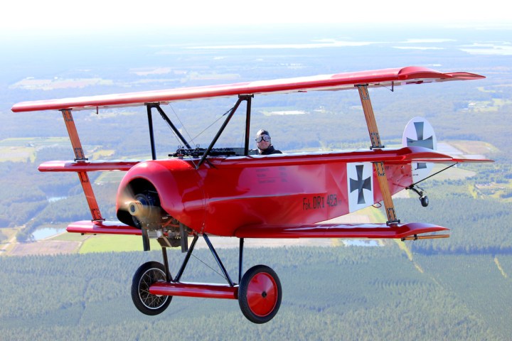 The TAVAS Fokker Dr.1 flying over southeast Queensland. A Lycoming-powered replica, TAVAS has plans to install a rotary engine to improve its authenticity. (Courtesy of TAVAS)