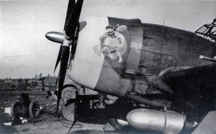 The ‘Typhoon McGoon’ artwork that adorned the nose of ‘Mike IV’, likely the work of 334th crew chief Staff Sgt. Don Allen of Cleveland, OH. (Photo Credit: Sobanski Collection, Cradle of Aviation Museum, NY | IWM UPL13931 | CC BY-NC 3.0)