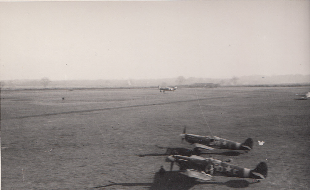 On 1 June 1944 he was promoted to Major. His squadron flew two missions into France on both June 4th and 5th, then began ‘The Longest Day’ with a pre-emptive and uneventful sweep east of Rouen, taking off in darkness at 0319 and returning to Debden for breakfast at 0945.