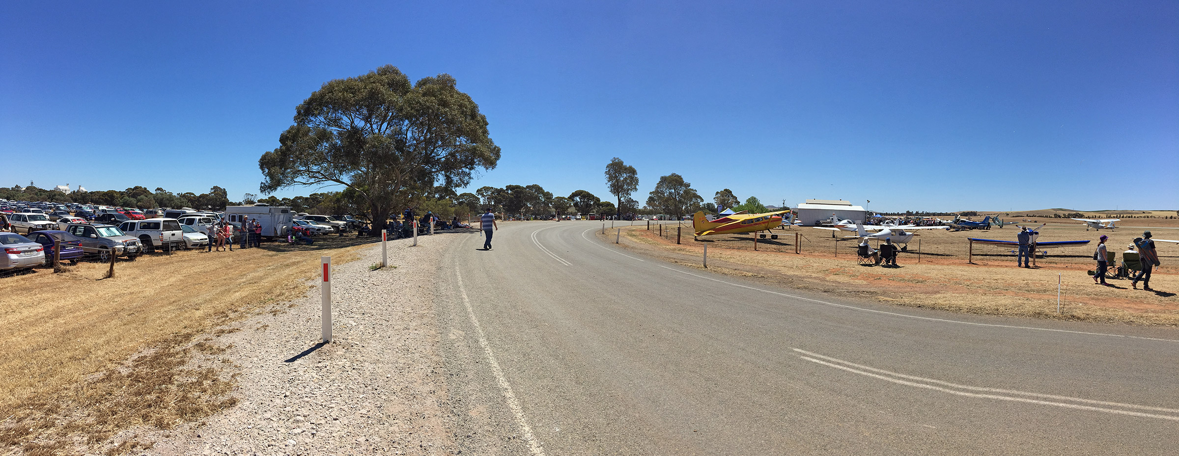The simplicity of the day has to be one of its greatest charms. There are a couple of viewing precincts immediately adjacent to the movement areas, but the overall plan simply involves closing the road that runs past the airport and letting people use it as a grandstand. Trees lining the westerns side of the road lend their grace and shade to the day.