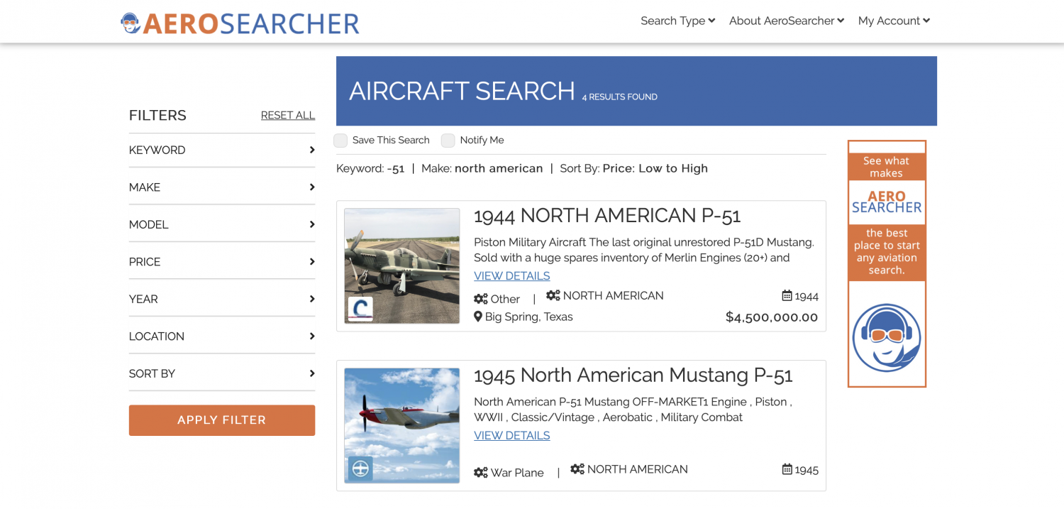 It is already a faster and more up to date way to find stuff and it looks really nice, but I’d like to see even more sites in the mix. eBay listings, for one. I’m not sure if that’s something Aerosearcher needs to go after, or if other sites have to reach out to them.