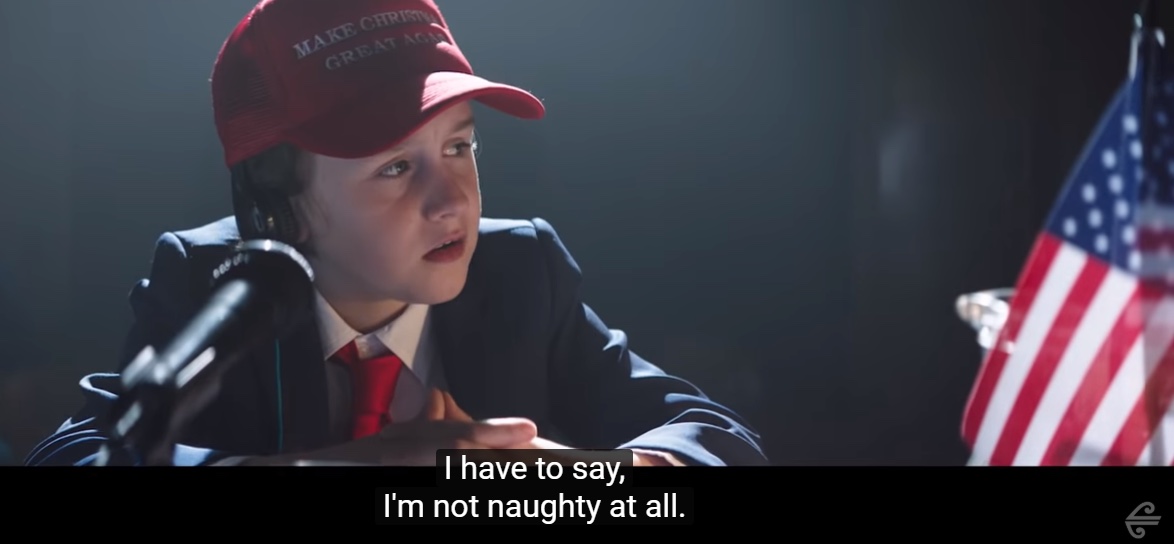 ‘The Nicest Christmas Ever’ has some not-so-subtle real-world undertones, too. The Naughty Kid Summit scenes sounds remarkably like what the grown-ups were supposed to have been doing in Poland recently. There’s even an American kid in a red trucker hat who declares he’s ‘… not naughty at all. In fact, I’m one of the nicest people I know.’