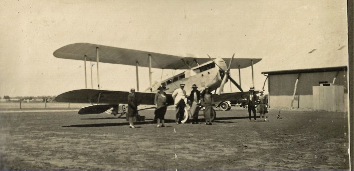 Intrepid air travellers pose with their aircraft at Hay, NSW, in the mid-1920s. This is undoubtedly an AAS DH.50, but it’s impossible to tell which one. (HistoryInPhotos | flickr.com via Trove)