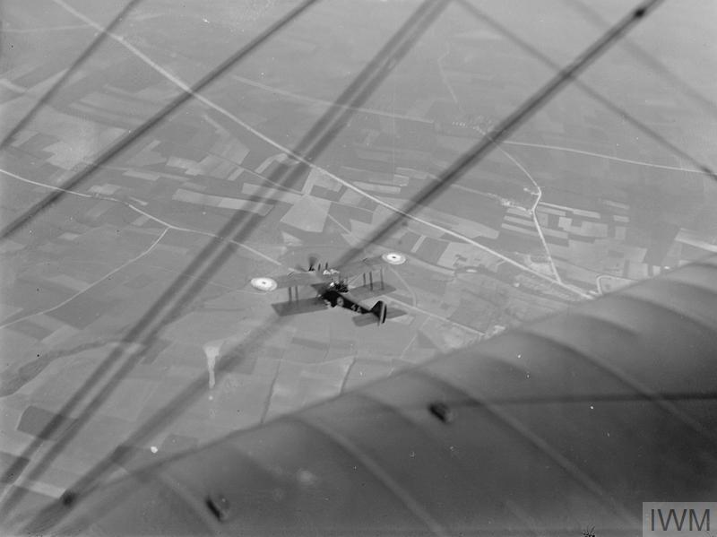A nice in-flight view of the venerable RE8 observation (and sometimes night bomber) aircraft – a true stalwart of the RFC/RAF in WW1. (IWM Q12175)