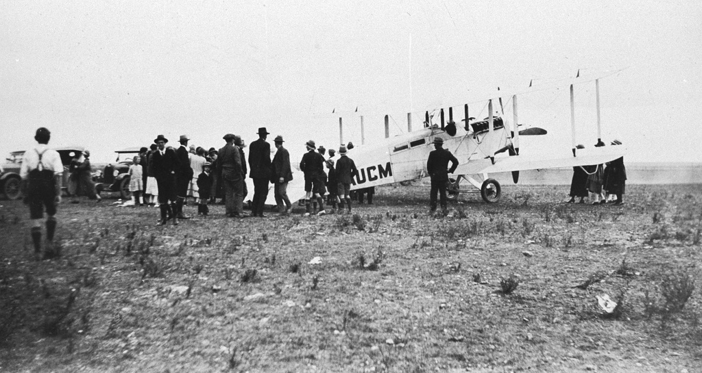 LASCO’s De Havilland DH.4 G-AUCM ‘Scrub Bird’, at Swan Reach in (late) 1923. First registered in 1921, G-AUCM had been bought by Larkin from a private owner in 1922. (State Library of SA | B-58395)