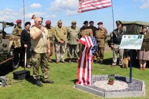 Mitch Peeke has kindly sent the following report from the unveiling of the memorial he organised, for the crew of USAAF B-17 Serial 44-6133, lost in collision overhead Allhallows, Kent on June 19th, 1944. If you haven’t yet read Still with us, you may like to start there.