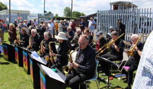 I then took the mike again and asked everyone to give generously during the remainder of the event, donating via the collection buckets that the Air Cadets would be carrying around. The cause: To help keep B-17 Sally B, based across the water at Duxford, flying. She flies as a memorial to the 79,000 allied aircrew who died flying B 17’s during WW2 and she is the only airworthy B-17 left in Europe. I then handed the proceedings over to Medway Big Band who immediately set about getting everybody “In The Mood”. Something they would continue to do for the next two hours, as they proved to be nothing short of brilliant!
