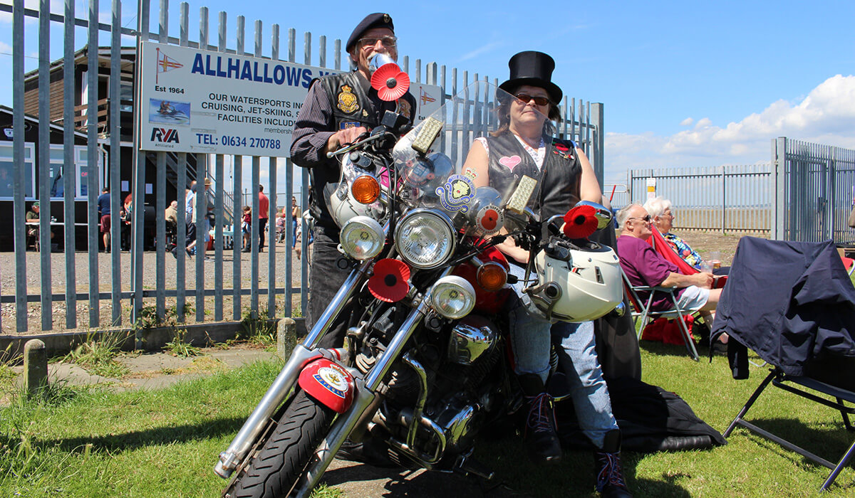 Looking around, I saw that our car park was packed. There were motorcycles there too. One, a red custom Yamaha called “The Mad Hatter” was owned by an ex Royal Navy man called Rob. My son Mylo had been talking to him and his wife about me and this event. Rob “The Mad Hatter” sought me out to shake my hand. There were two Hells Angels present also. One of them I know works on the Park. I saw both of them putting paper money into one of the Air Cadets’ buckets. Thanks Guys!
