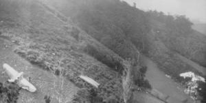 The wreckage of 42-72680 strewn across a mountainside on Santa Maria Island in the Azores.