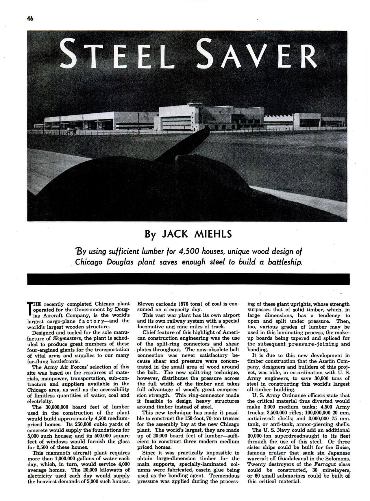 The fact that it was ENORMOUS and built entirely from wood to save strategic steel supplies were just kind of interesting, but not really relevant to that post. However, the account I stumbled across in November 1943’s Flying is much more complete – and simply too good to pass over.