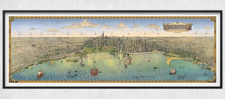 Phil tends to focus on Chicago’s iconic buildings and location, but at a very human level. That ranges from beautiful studies of local home and downtown styles to profiles of Chicago ‘L’ train rolling stock and the city’s distinctive sports stadiums. Then – be still my heart – there are also illustrated maps and views of the city in its lakefront setting.