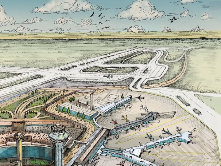 The juxtaposition of a 21st Century transportation hub with the organic style of illuminated cartography brings the airport back into Phil’s trademark human realm.