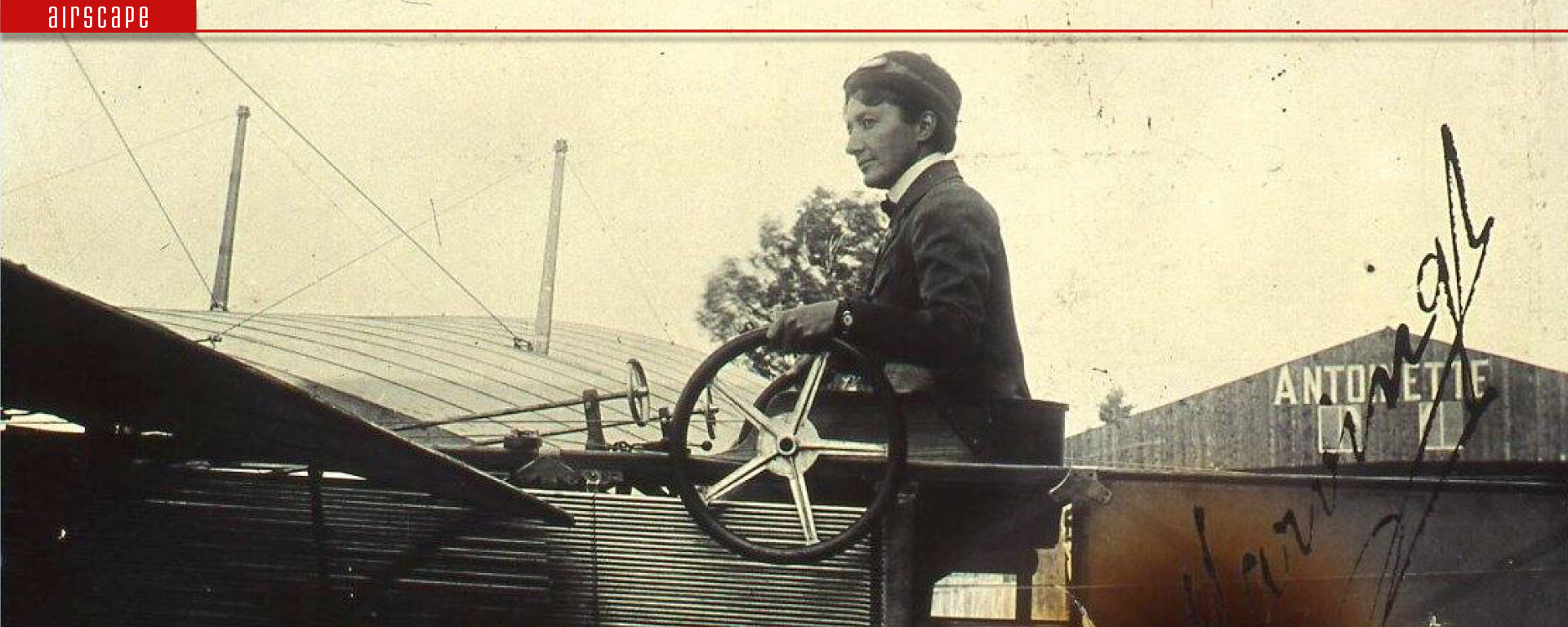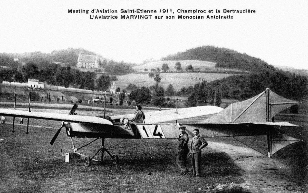 Marie prepares to fly an Antoinette during the 1911 Meeting d’Aviation at St. Etienne, near Lyon.