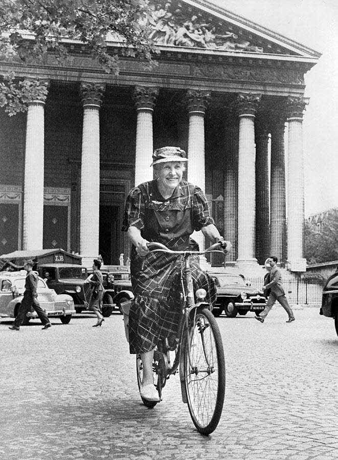 Sprightly 85-year-old Marie on her beloved bicycle, after having ridden from Nancy to Paris in 1960.