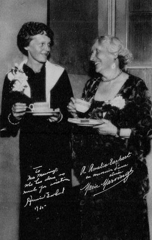 Amelia Earhart and Marie, together after speaking to 2,500 women members of the US National Aeronautical Association, Chicago, 1937.