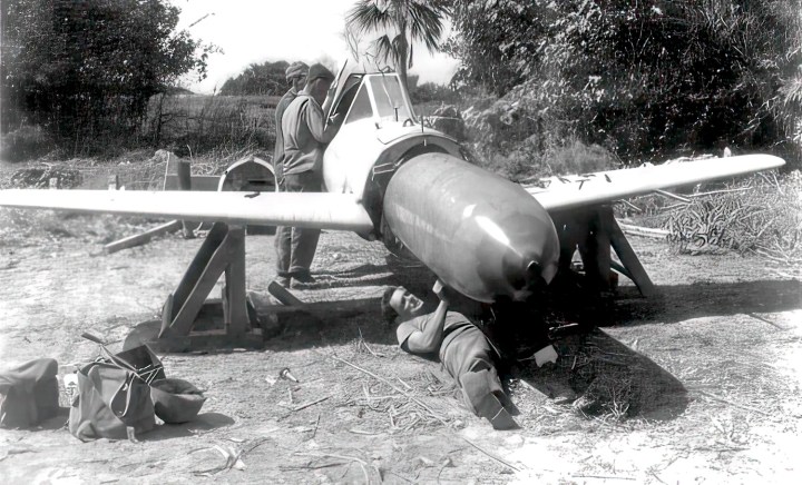 It was also very heavy for its small size. The heavy ballast in the nose — installed in place of the warhead to maintain the proper weight and balance — meant that it retained a huge amount of inertia from the dive, energy that was converted into airspeed and which took time to dissipate. And at the high speed I was going the wings were producing so much lift that the craft simply refused to settle down towards the field.