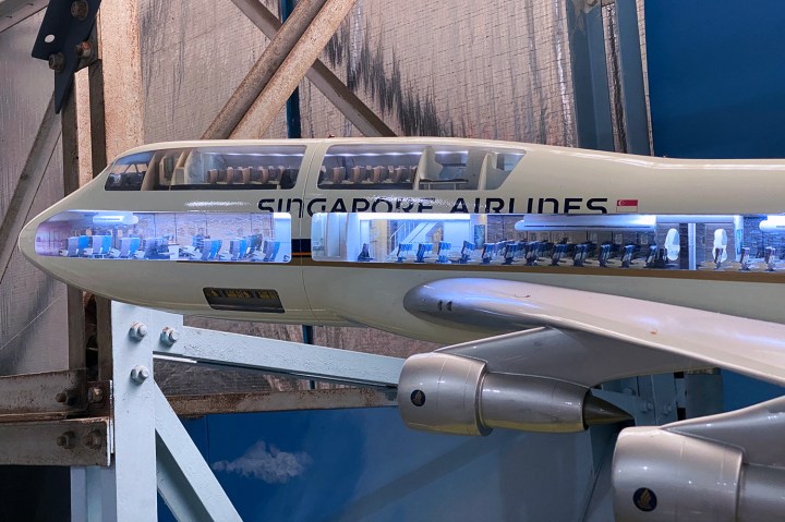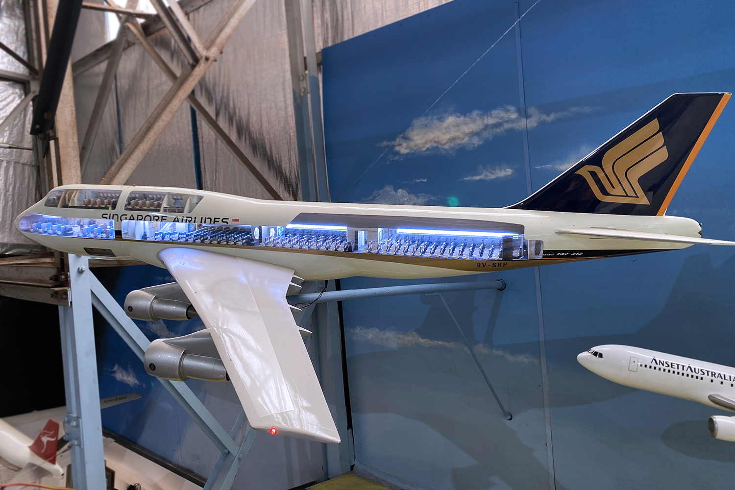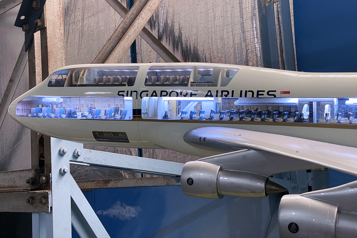 My most recent walkaround (and this post) began with the amazing display model of Singapore Airlines Boeing 747-312M ‘Big Top’ 9V-SKP (msn 23769/666) which is in the collection. I wanted to get some shots of it as a follow-on to the recent articles showing aircraft cutaways – as the physical manifestation of that long-standing marketing art.