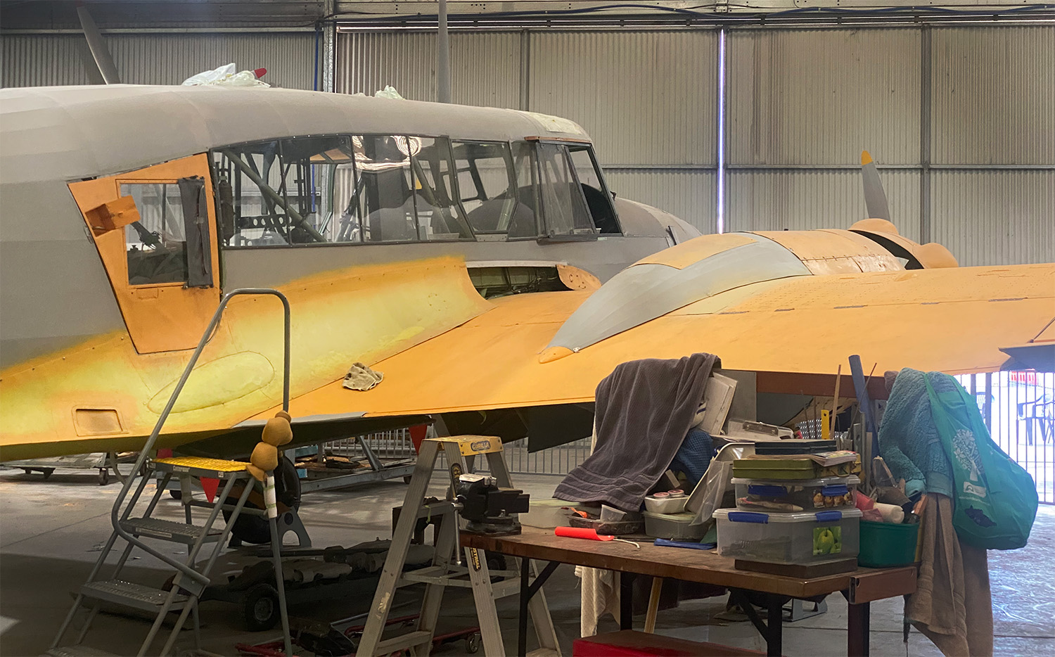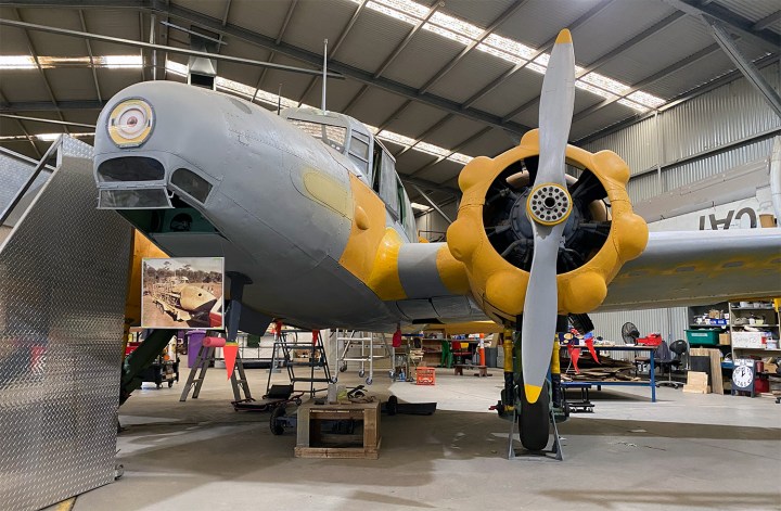 More than a thousand Ansons were used to train multi-engine pilots, navigators , wireless operators, air gunners and bomb-aimers in Australia during World War II. Afterwards, they were sold off to the public – generally going to farmers as a convenient source of quality hardware. EF854 was one of those, although it has since been joined by parts from AW965 which was flown in civil service as VH-FIA, for Flinders Island Airlines. You can read more here.